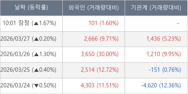 [표] 외국인ㆍ기관 순매매량 (단위 주)