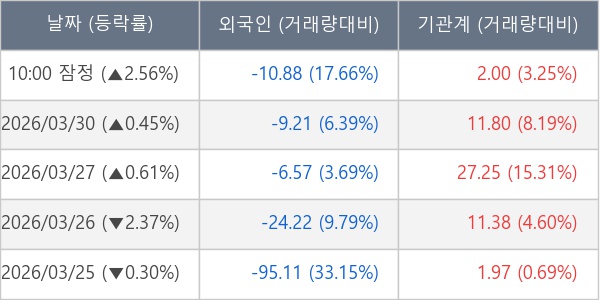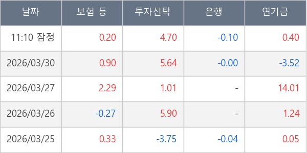 [표] 주요 기관별 순매매량 (단위 만주)