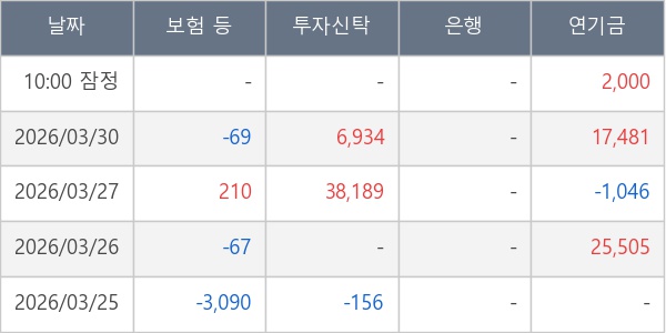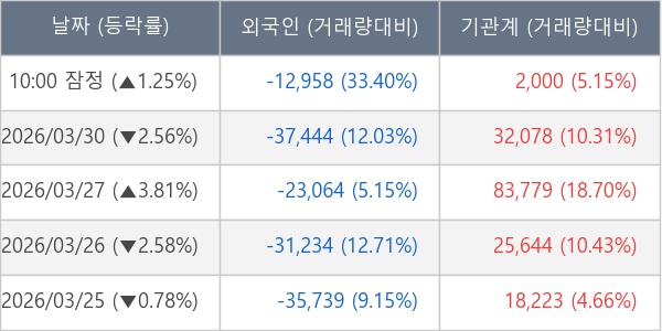 [표] 주요 기관별 순매매량 (단위 주)