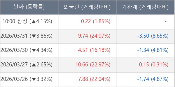 [표] 외국인ㆍ기관 순매매량 (단위 만주)