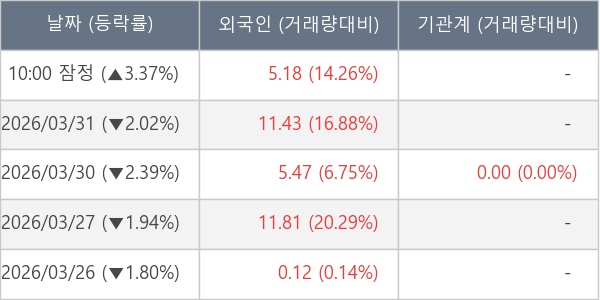 [표] 외국인ㆍ기관 순매매량 (단위 만주)