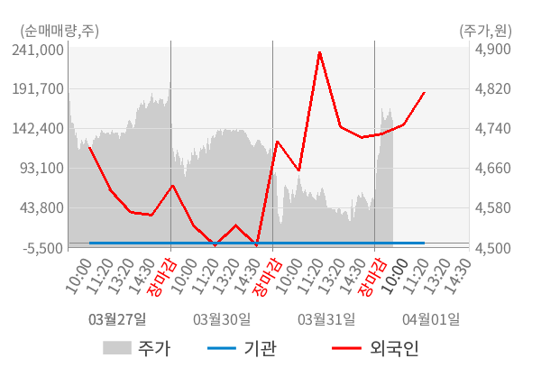 [서울=뉴스핌] 로보뉴스 = 01일 10시 15분 현재 빅텍(065450)은 전일 대비 3.37% (현재가 4,755원) 상승했고, 외국인이 최근 9일 연속 순매수(누적 141.92만 주, 잠정) 행진을 하고 있다.