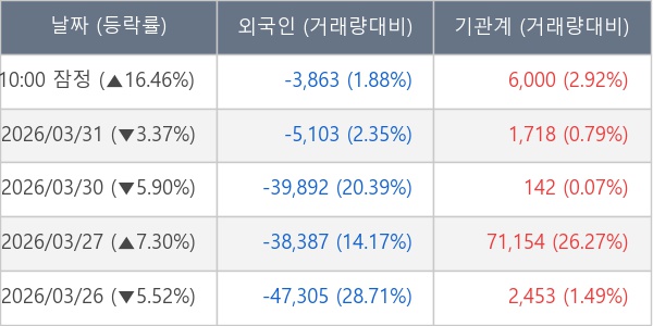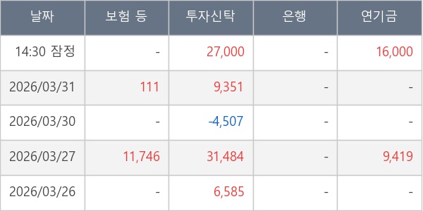 [표] 주요 기관별 순매매량 (단위 주)