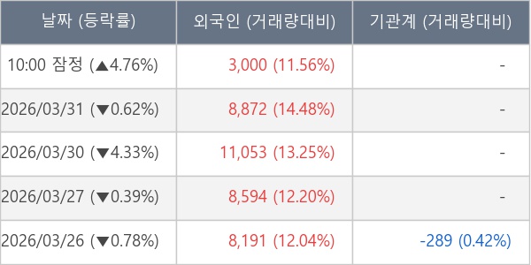[표] 외국인ㆍ기관 순매매량 (단위 주)