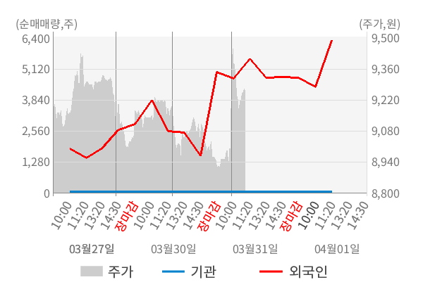 [표] 외국인ㆍ기관 순매매량 (단위 주)