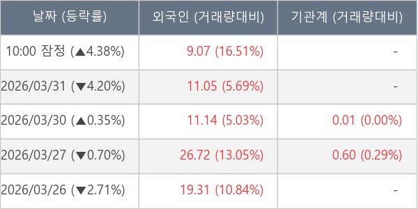 [표] 외국인ㆍ기관 순매매량 (단위 만주)