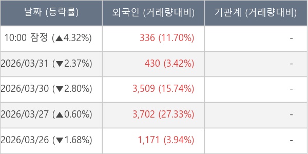 [표] 외국인ㆍ기관 순매매량 (단위 주)