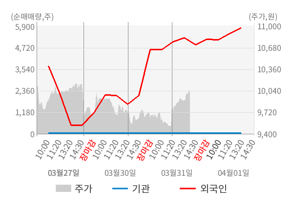 [서울=뉴스핌] 로보뉴스 = 01일 10시 15분 현재 에르코스(435570)는 전일 대비 4.32% (현재가 9,900원) 상승했고, 외국인이 최근 10일 연속 순매수(누적 35,225주, 잠정) 행진을 하고 있다.