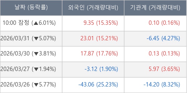 [표] 외국인ㆍ기관 순매매량 (단위 만주)