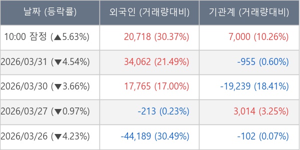 [표] 외국인ㆍ기관 순매매량 (단위 주)