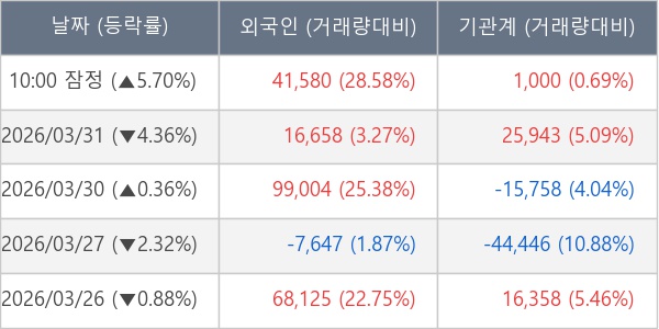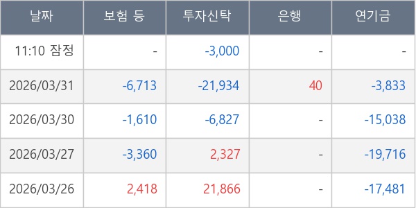 [표] 주요 기관별 순매매량 (단위 주)