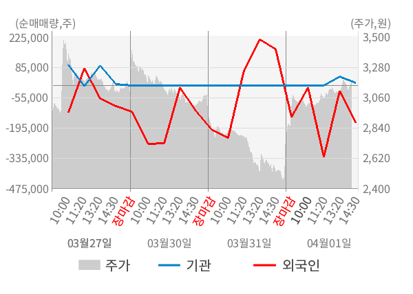 [표] 주요 기관별 순매매량 (단위 만주)