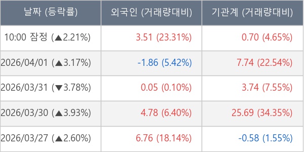 [표] 주요 기관별 순매매량 (단위 만주)
