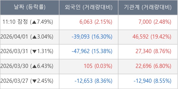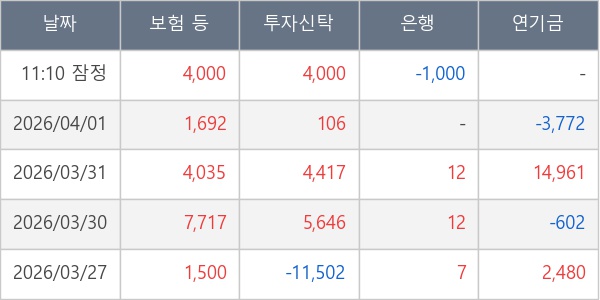 [표] 주요 기관별 순매매량 (단위 주)