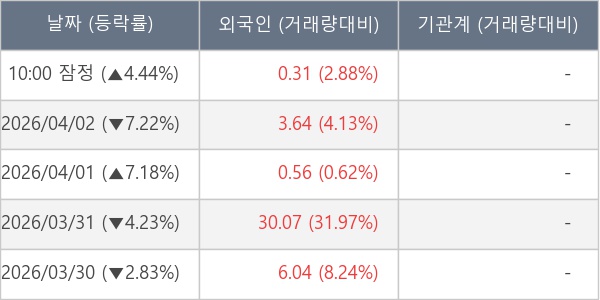 [표] 외국인ㆍ기관 순매매량 (단위 만주)