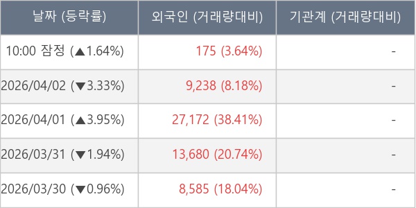 [표] 외국인ㆍ기관 순매매량 (단위 주)