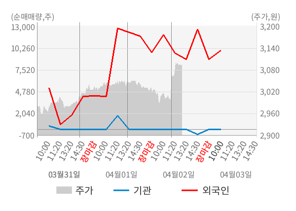 [표] 외국인ㆍ기관 순매매량 (단위 주)