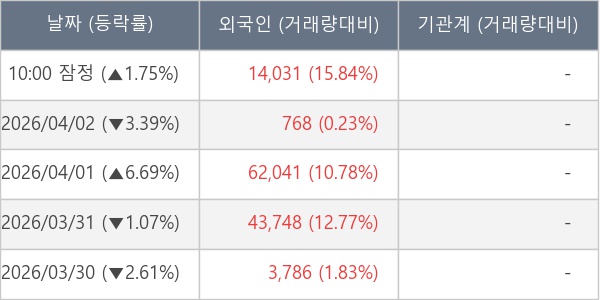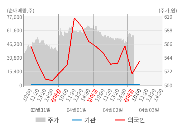[표] 외국인ㆍ기관 순매매량 (단위 주)