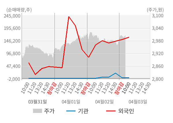 [서울=뉴스핌] 로보뉴스 = 03일 10시 15분 현재 대한제당(001790)은 전일 대비 1.01% (현재가 3,005원) 상승했고, 외국인이 최근 6일 연속 순매수(누적 40.91만 주, 잠정) 행진을 하고 있다.