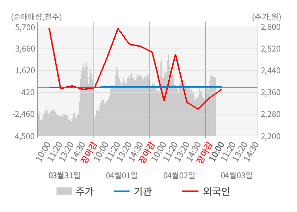 [서울=뉴스핌] 로보뉴스 = 03일 10시 15분 현재 대한해운(005880)은 외국인과 기관이 각각 83.22 만 주, 1.00 만 주 순매수(잠정) 하면서 전일 대비 3.43% (현재가 2,410원) 상승하고 있다.