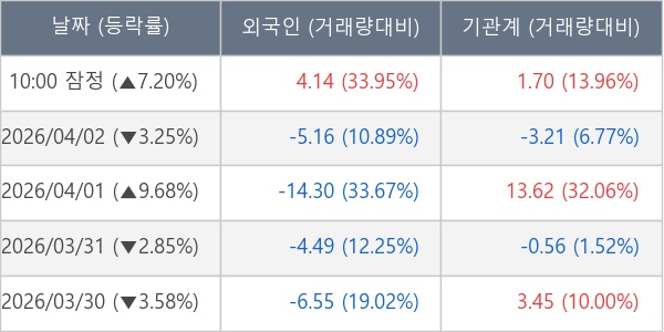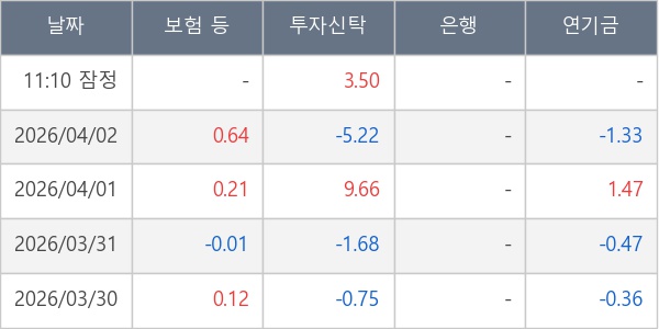 [표] 주요 기관별 순매매량 (단위 만주)