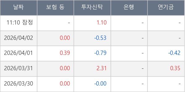 [표] 주요 기관별 순매매량 (단위 만주)