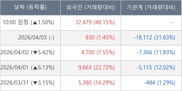 [표] 외국인ㆍ기관 순매매량 (단위 주)