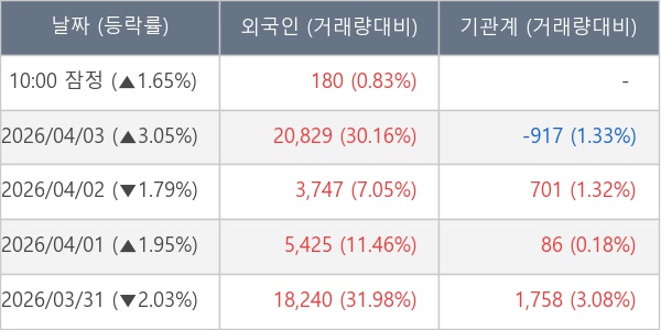 [표] 외국인ㆍ기관 순매매량 (단위 주)