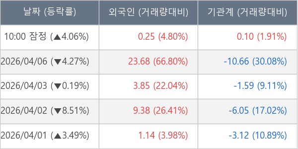 [표] 외국인ㆍ기관 순매매량 (단위 만주)