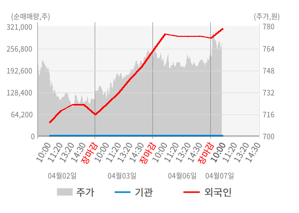 [서울=뉴스핌] 로보뉴스 = 07일 10시 15분 현재 휴마시스(205470)는 전일 대비 1.05% (현재가 768원) 상승했고, 외국인이 최근 5일 연속 순매수(누적 37.57만 주, 잠정) 행진을 하고 있다.