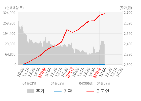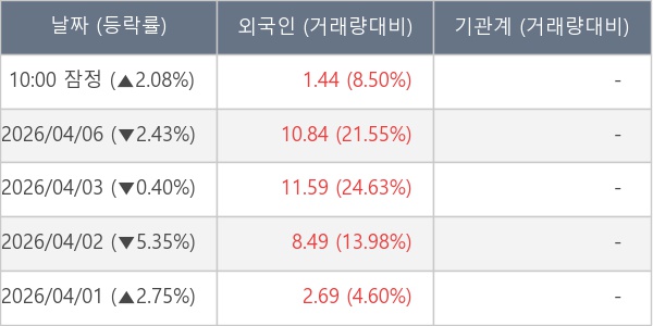 [표] 외국인ㆍ기관 순매매량 (단위 만주)