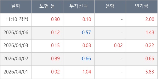 [표] 주요 기관별 순매매량 (단위 만주)