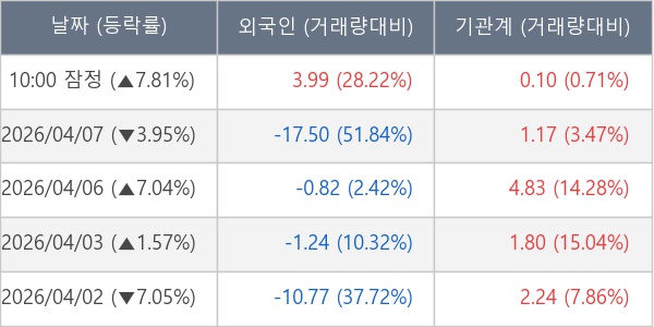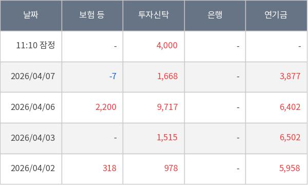[표] 주요 기관별 순매매량 (단위 만주)
