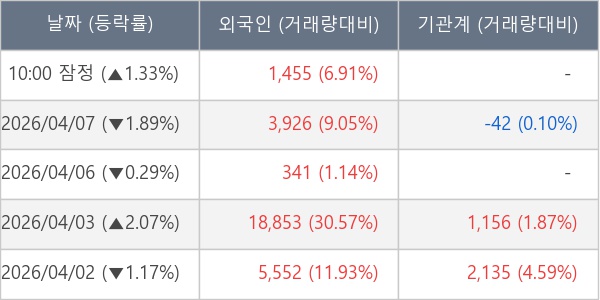 [표] 외국인ㆍ기관 순매매량 (단위 주)