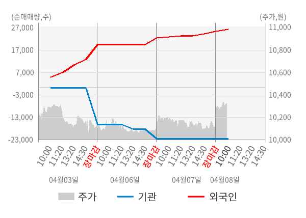 [표] 외국인ㆍ기관 순매매량 (단위 주)