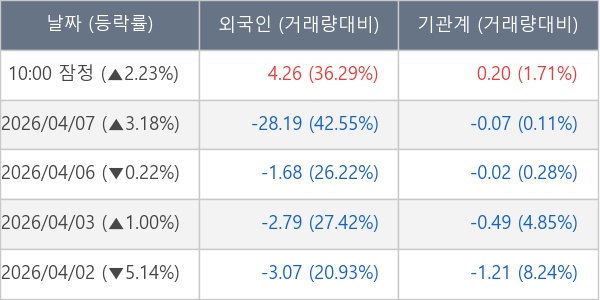 [표] 외국인ㆍ기관 순매매량 (단위 만주)