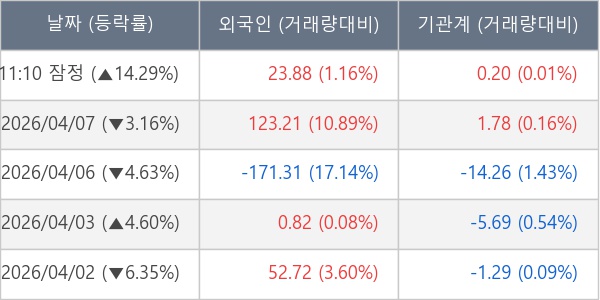 [표] 주요 기관별 순매매량 (단위 만주)