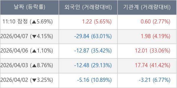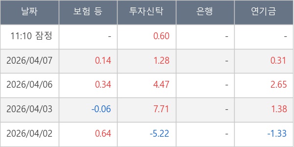 [표] 주요 기관별 순매매량 (단위 만주)