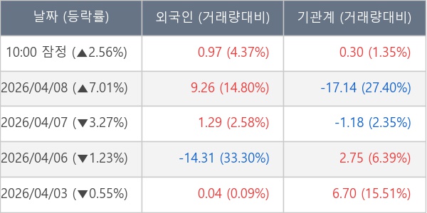 [표] 주요 기관별 순매매량 (단위 만주)