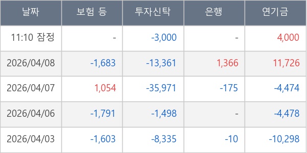 [표] 주요 기관별 순매매량 (단위 주)