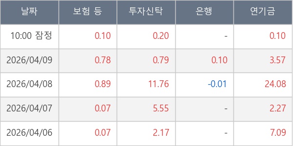[표] 주요 기관별 순매매량 (단위 만주)