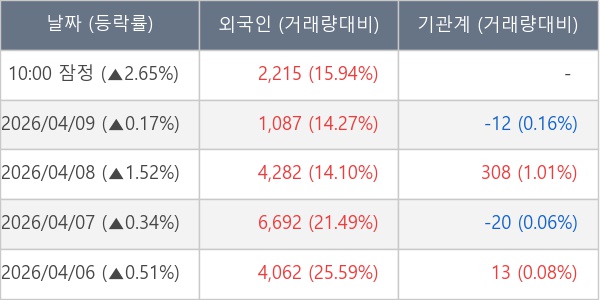 [표] 외국인ㆍ기관 순매매량 (단위 주)