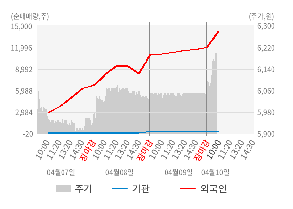 [서울=뉴스핌] 로보뉴스 = 10일 10시 15분 현재 동원수산(030720)은 전일 대비 2.65% (현재가 6,200원) 상승했고, 외국인이 최근 5일 연속 순매수(누적 18,338주, 잠정) 행진을 하고 있다.