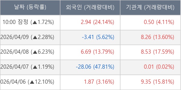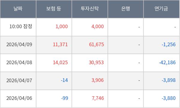 [표] 주요 기관별 순매매량 (단위 만주)