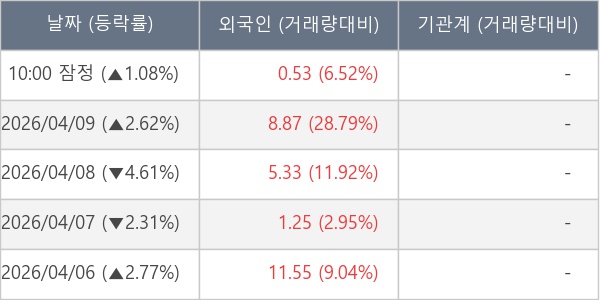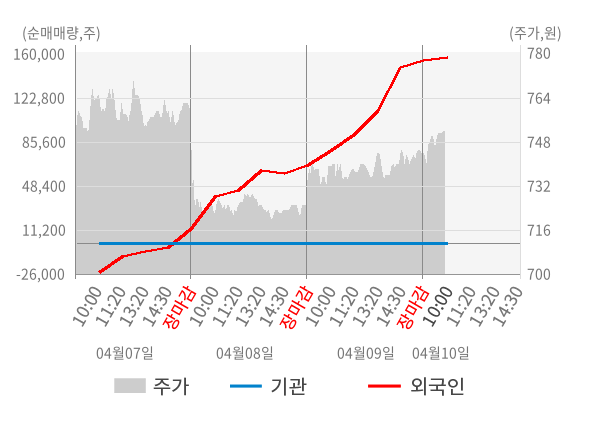 [표] 외국인ㆍ기관 순매매량 (단위 만주)