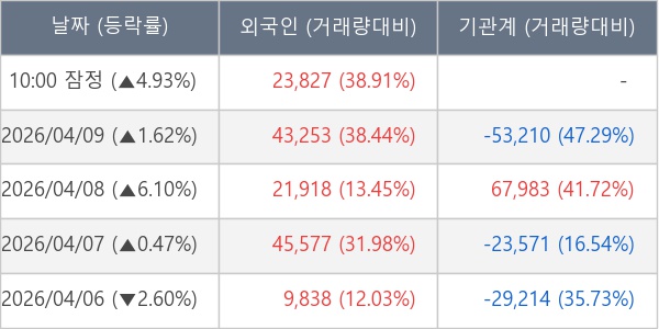 [표] 외국인ㆍ기관 순매매량 (단위 주)