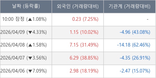 [표] 외국인ㆍ기관 순매매량 (단위 만주)