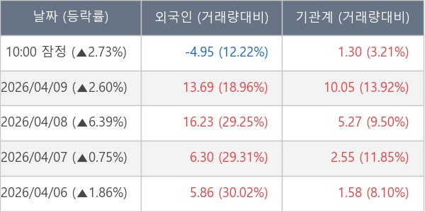 [서울=뉴스핌] 로보뉴스 = 10일 10시 15분 현재 동국제강(460860)은 전일 대비 2.73% (현재가 10,530원) 상승했고, 기관이 최근 6일 연속 순매수(누적 23.44만 주, 잠정) 행진을 하고 있다.