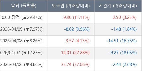 ※ 사모펀드 등 일부 기관의 순매매량은 표시되지 않음