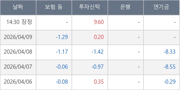 [표] 주요 기관별 순매매량 (단위 만주)